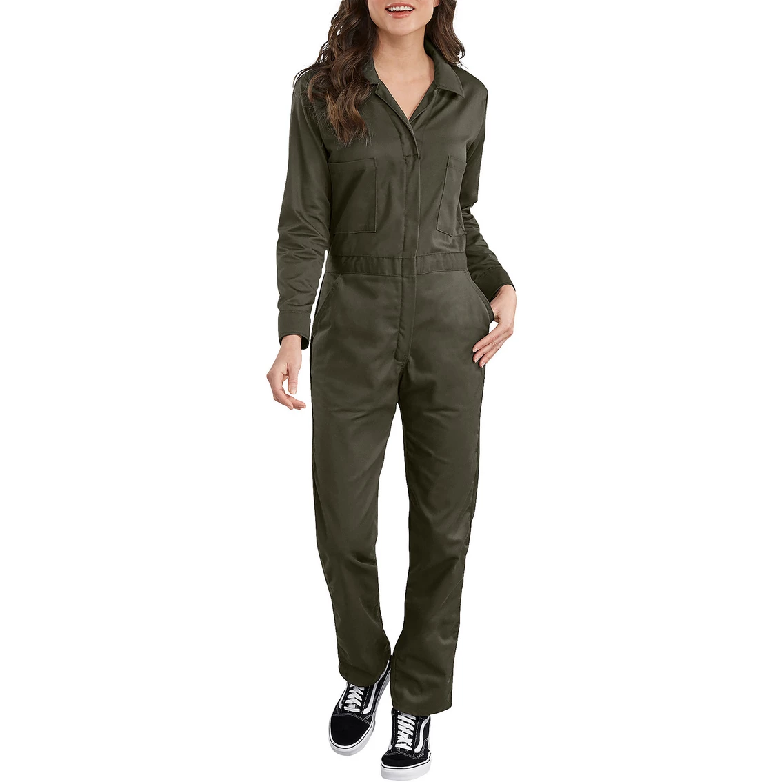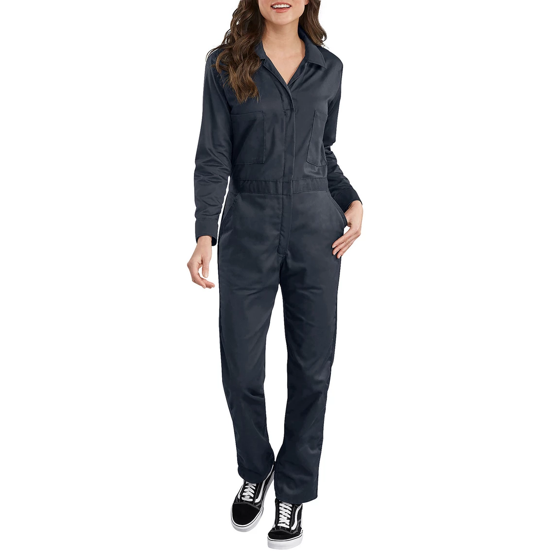 Be ready to face a day of hard work in Dickies Long-Sleeve Cotton Twill Coverall. Made of 100% cotton, this twill material is soft enough for all-day comfort. Move around as you please with a box pleat in the back that lets you stretch and twist any way you see fit. The cinched waistband is made with elastic so the fit will always be true. Large back pockets make it handy to store necessities you’ll need during your work day. Style: FV483KH.