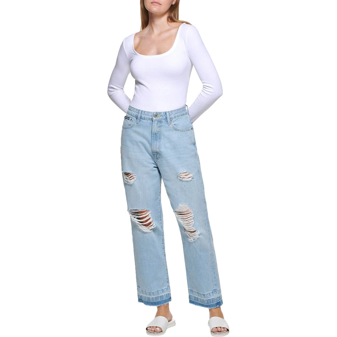 The Kent high rise denim jeans from DKNY feature a straight leg and distressed details, perfect to be dressed up or down. These versatile jeans pair well with all your favorite tops. Style: E1RR0743.