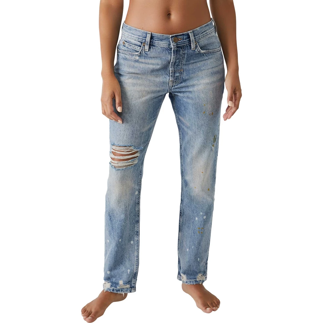 So classic and essential, these Free People low-rise jeans from the We The Free collection are a must have. They feature a slim, straight-leg silhouette with subtle distressing throughout for an effortless touch of edge. Pair this distressed denim look with your favorite blouse to complete your look. Style: OB1507036400.