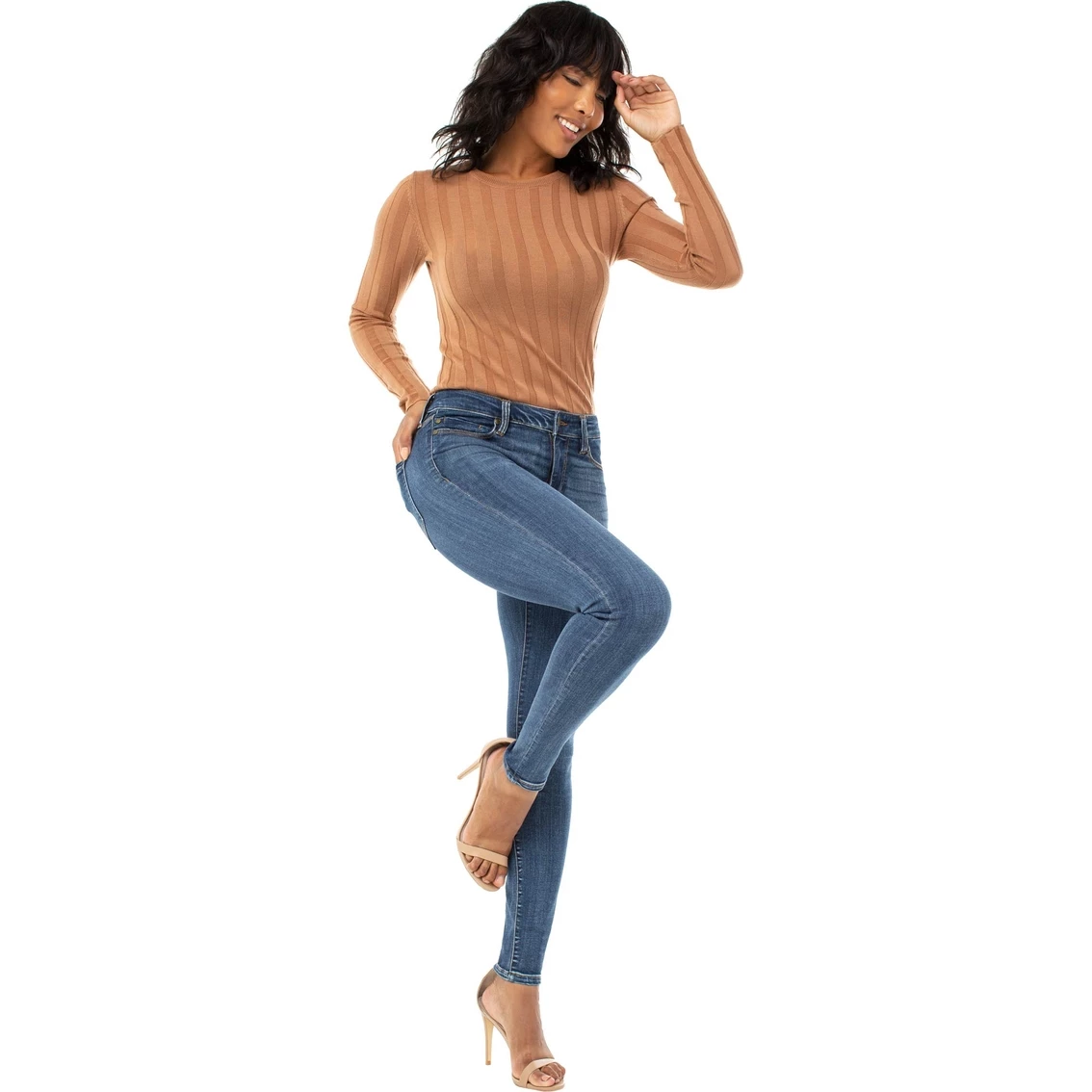Liverpool Abby Tall Skinny Jeans. Mid-Rise skinny jeans. Silky soft with amazing stretch. It’s a sleek and sophisticated look with 5-pocket styling details, a set-in waistband with belt loops, and zip-fly with single logo button closure. 40% Cotton, 32% Poly, 27% Rayon, 1% Spandex. Style: LT2000F80.
