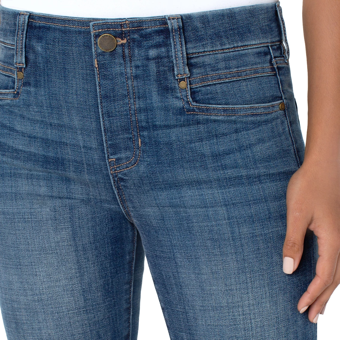 Liverpool’s patented Gia Glider gets a fashion update with a wide crop flare and a slit. The perfect addition to spice up your wardrobe and break from your favorite skinny. Style: LM7759CH4420.