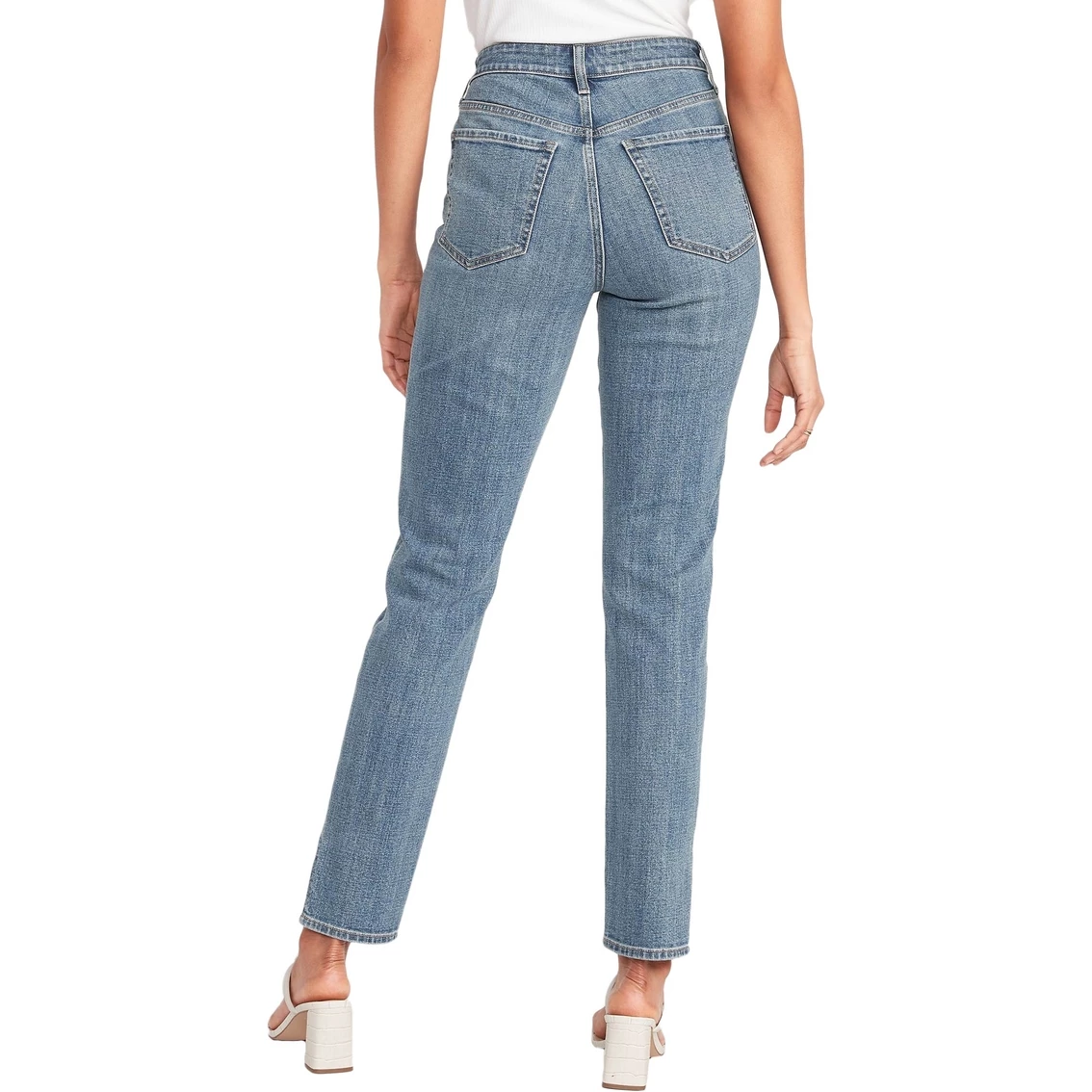 The straight dope on these Old Navy O.G. Straight Jeans — think mom jeans, if your mom was a supermodel. Part ’90s nostalgia, part new-normal comfort, served straight up. Feature contoured high-rise waistband with button closure and built-in belt loops, hidden zip fly, riveted scoop pockets and coin pocket at front, patch pockets at back. Clever Secret-Smooth front pockets hold you in for a smoothing effect. Their little secret — side slits at hem. Fading and whiskering create a distressed, lived-in look. Durable medium-wash denim, with a hint of comfortable stretch for a broken-in feel. This pair of jeans is made with 12% recycled polyester and 5% recycled cotton, less waste in the world. Never-Quit Shape Retention holds its shape and hugs in all the right places, wear after wear. Tag-free label inside back waist for added comfort. BodEquality means size equality, price equality and style for women everywhere. They redesigned your favorite fashions (in sizes 16-24 XL-3X) to create their most comfortable fit yet. Check out your current size for an improved look and feel.